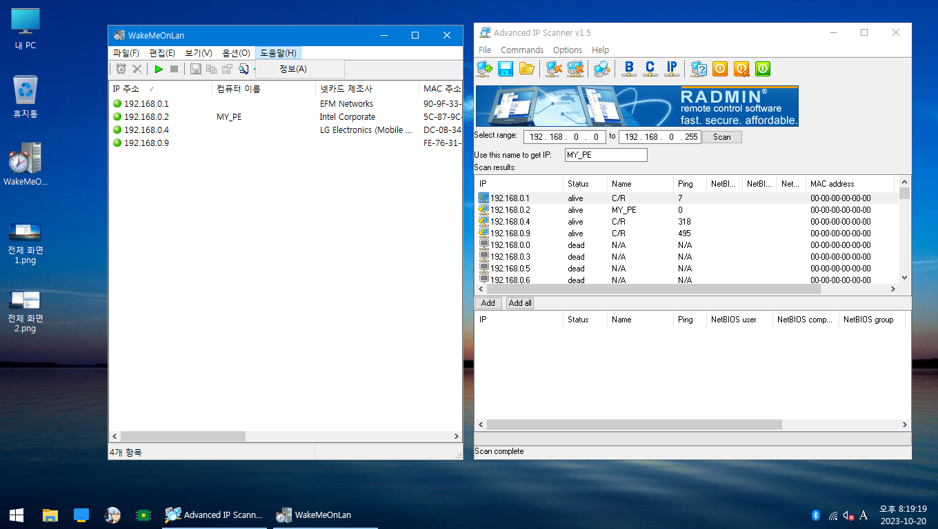 Windows PE에서 닷넷 없이 사용 가능한 구버전 Advanced IP Scanner 비교했는데 WakeMeOnLan이 기능적으로