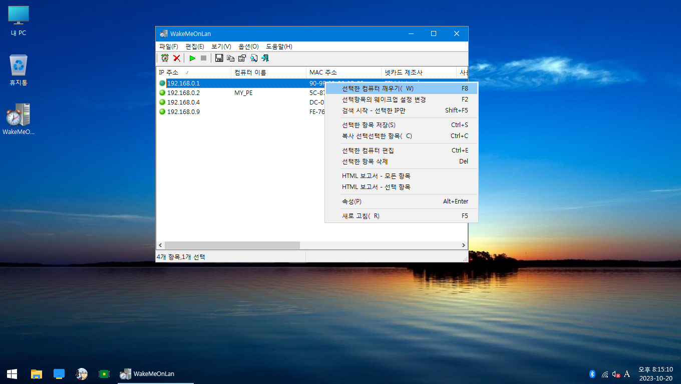 IP 스캐너 기능도 더 좋고 거기다 WOL 기능까지 있으니 앞으로 윈도우와 PE에서 이 프로그램을 사용하는 것이