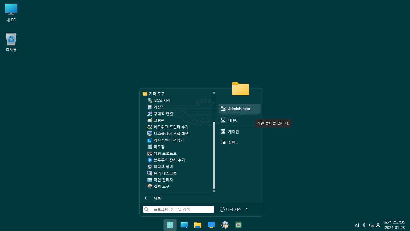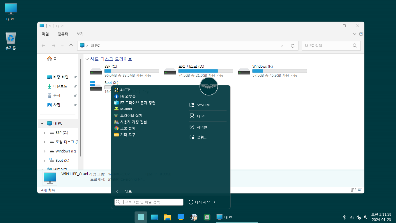 이 23H2 Win11PE 가 대단한게 시스템으로 부팅 후에 어드민으로 변경 가능하며