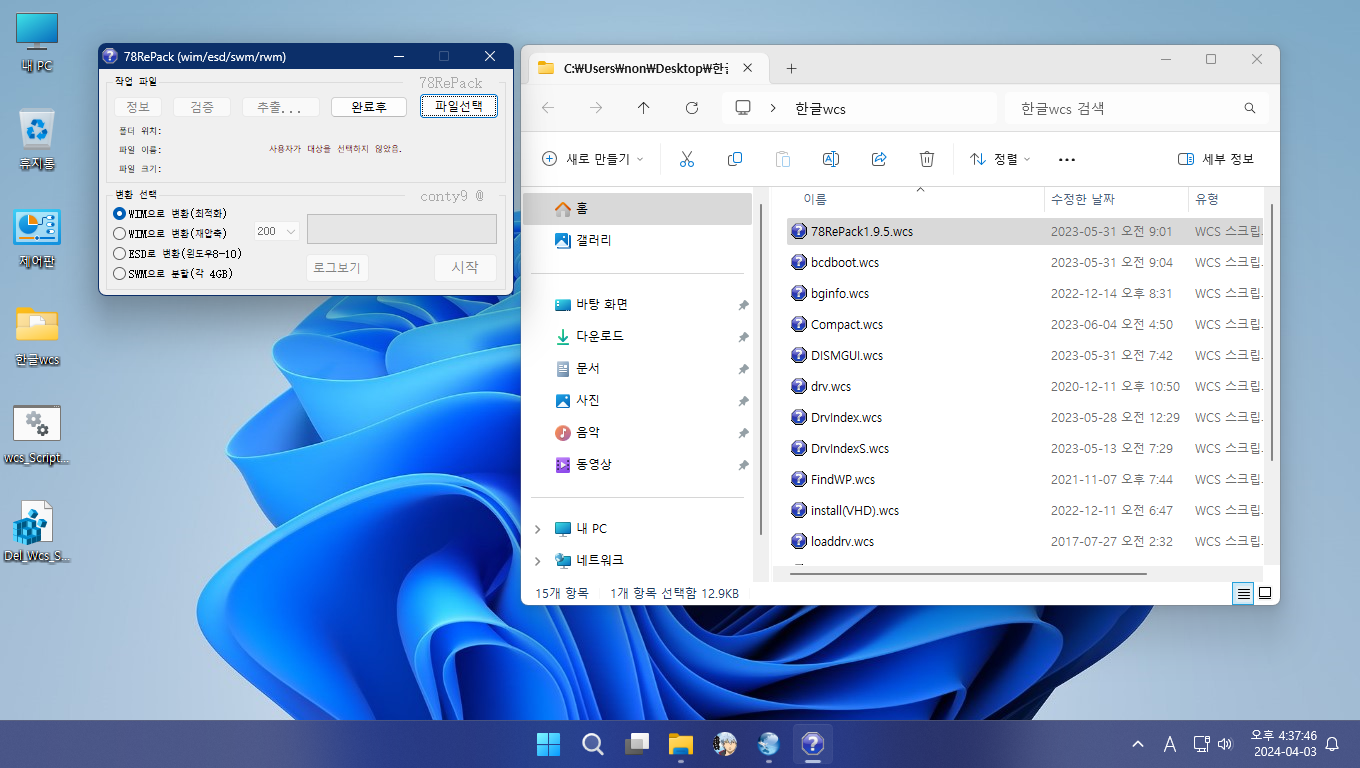 pc에서 앱 선택한 후에 pecmd.exe 파일을 선택하면 바로 wcs 프로그램을 사용할 수도 있습니다.