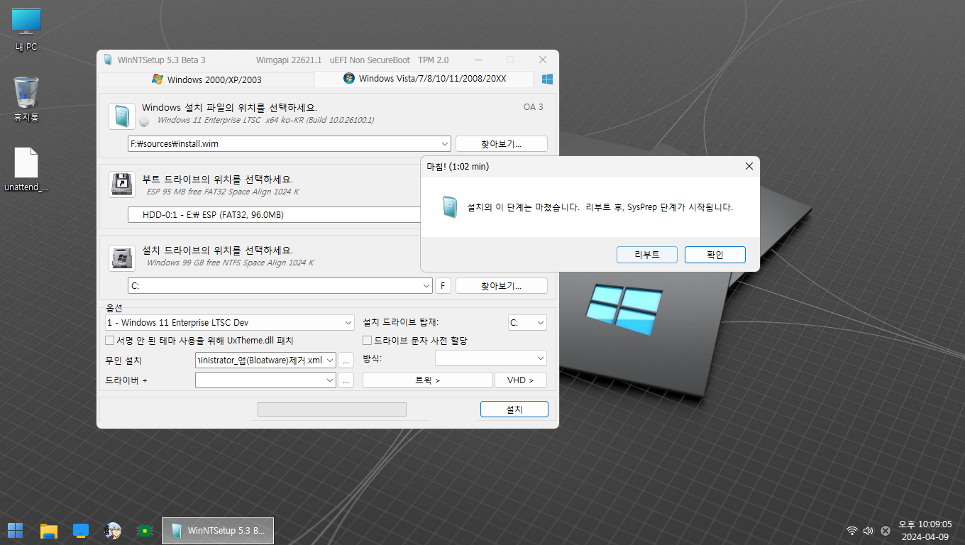 오늘 조금 심심해서 Win11 24h2 무인 어드민 설치로 윈도우를 설치했습니다.