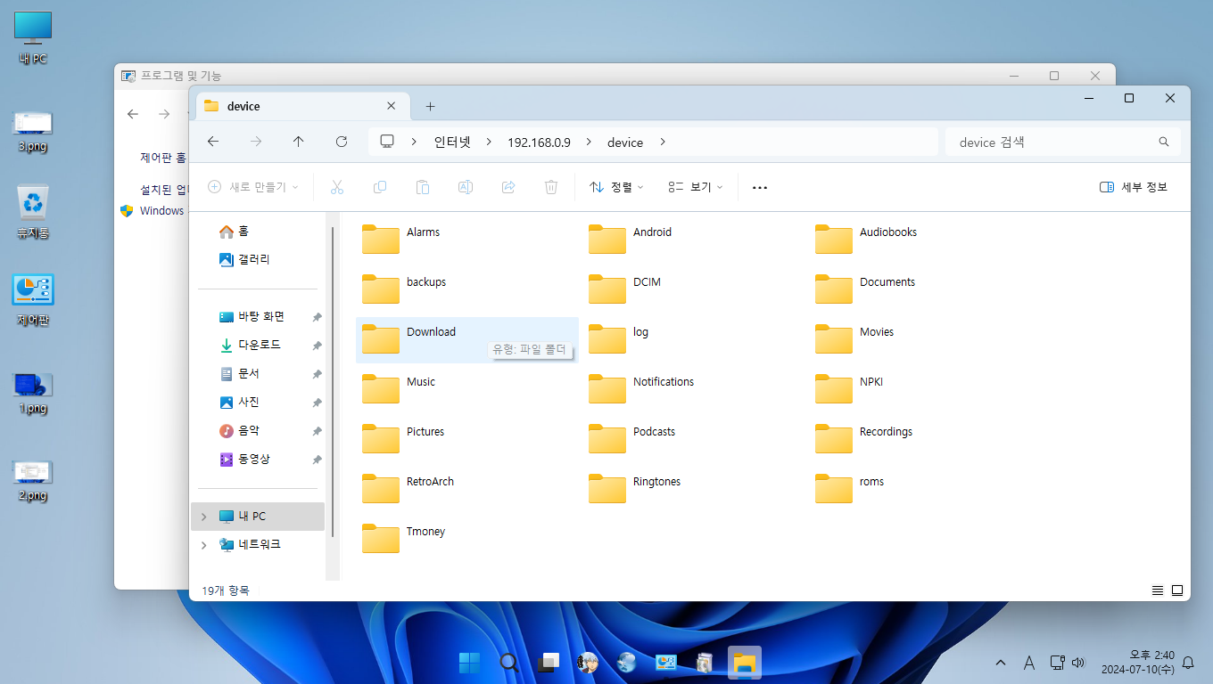 서버는 스마트폰에 cx 탐색기 FTP 서버 기능으로 같은 네트워크 상에서 윈도우11 24h2