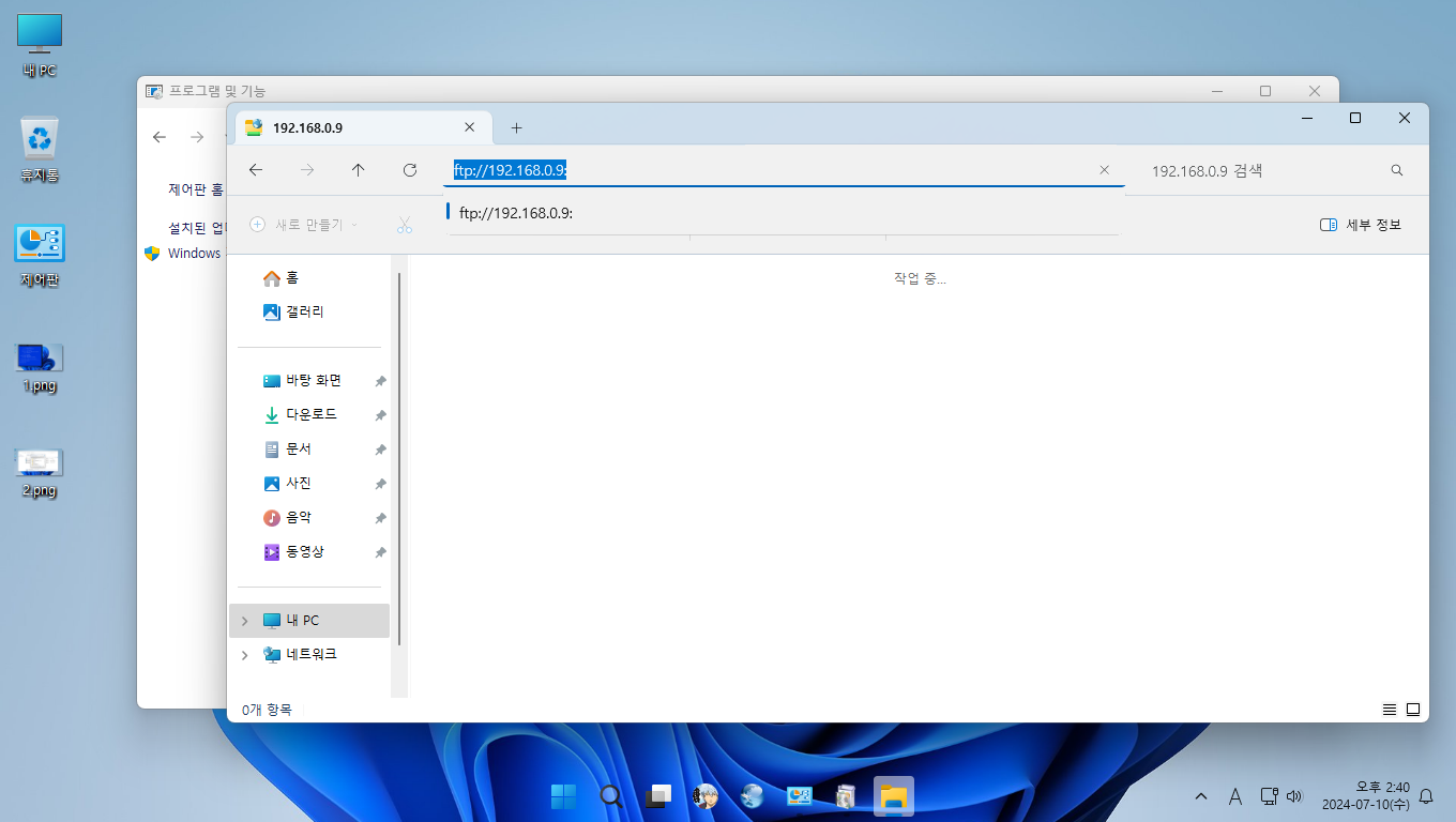 최신 윈도우11 24h2(261000.1000)에서 탐색기에서 FTP 서버 접속이 안된다고 해서 테스트 해봤습니다.