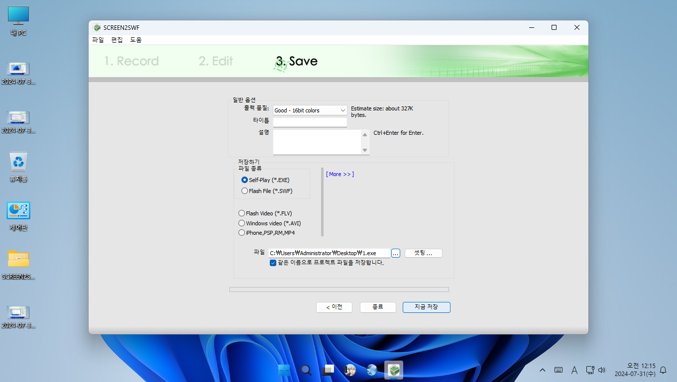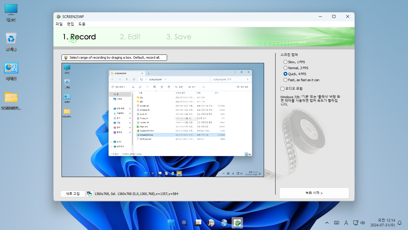 Screen2SWF 화면 녹화 프로그램을 리소스 핵커 프로그램을 통해서 한글화했습니다.