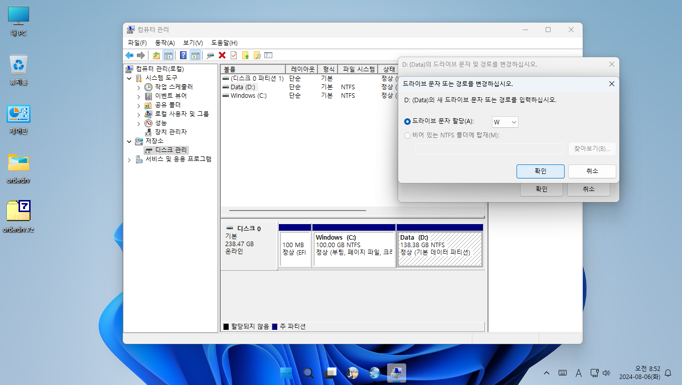 본래 이 방법은 Kuerpe에서 드라이브 문자 정렬하는 방법인데 실 컴퓨터에서도 사용가능합니다.
