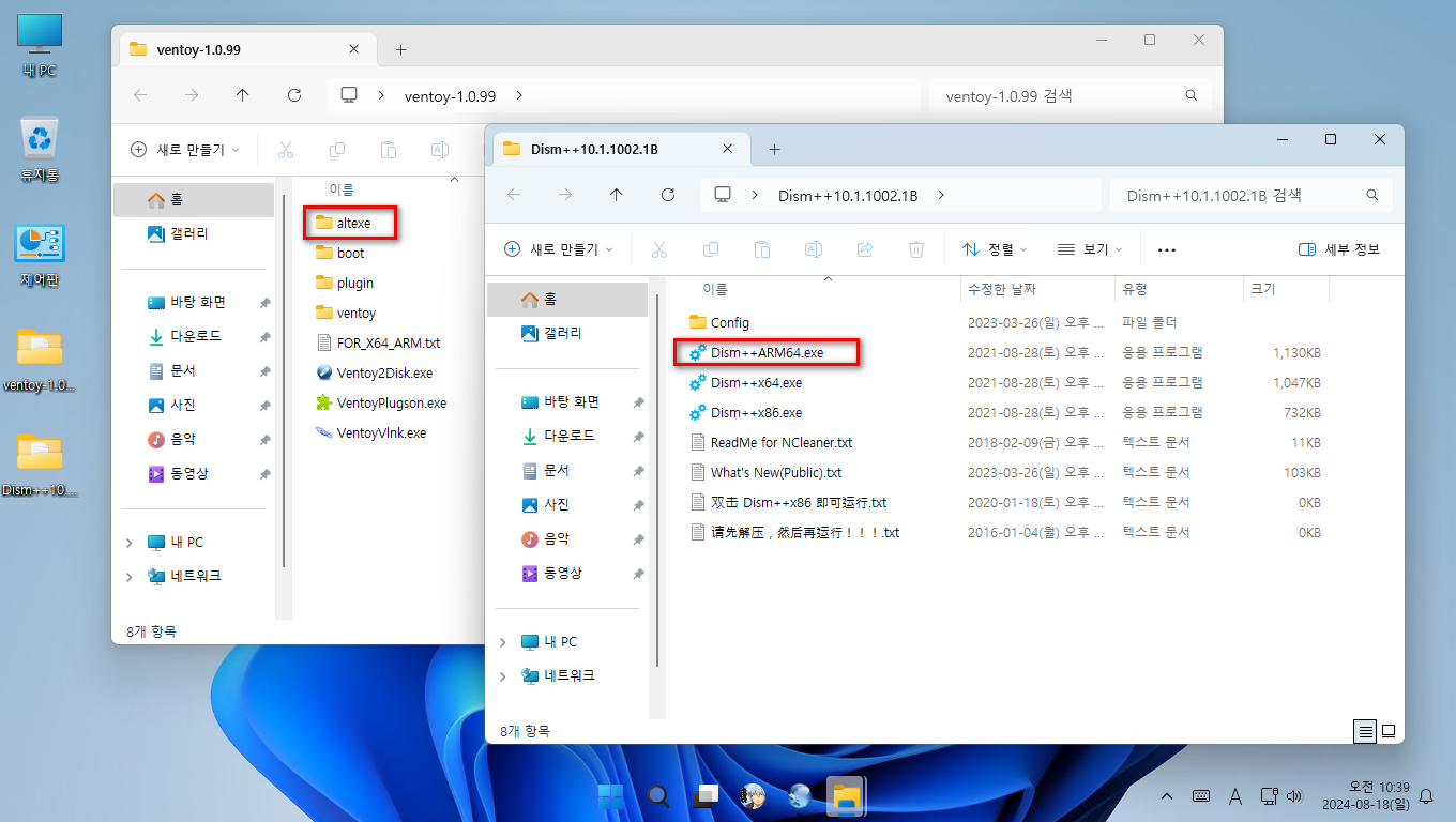 다만 벤토이와 Dism++ 둘다 ARM을 지원하고 있어서 윈도우 설치하고 백업 및
