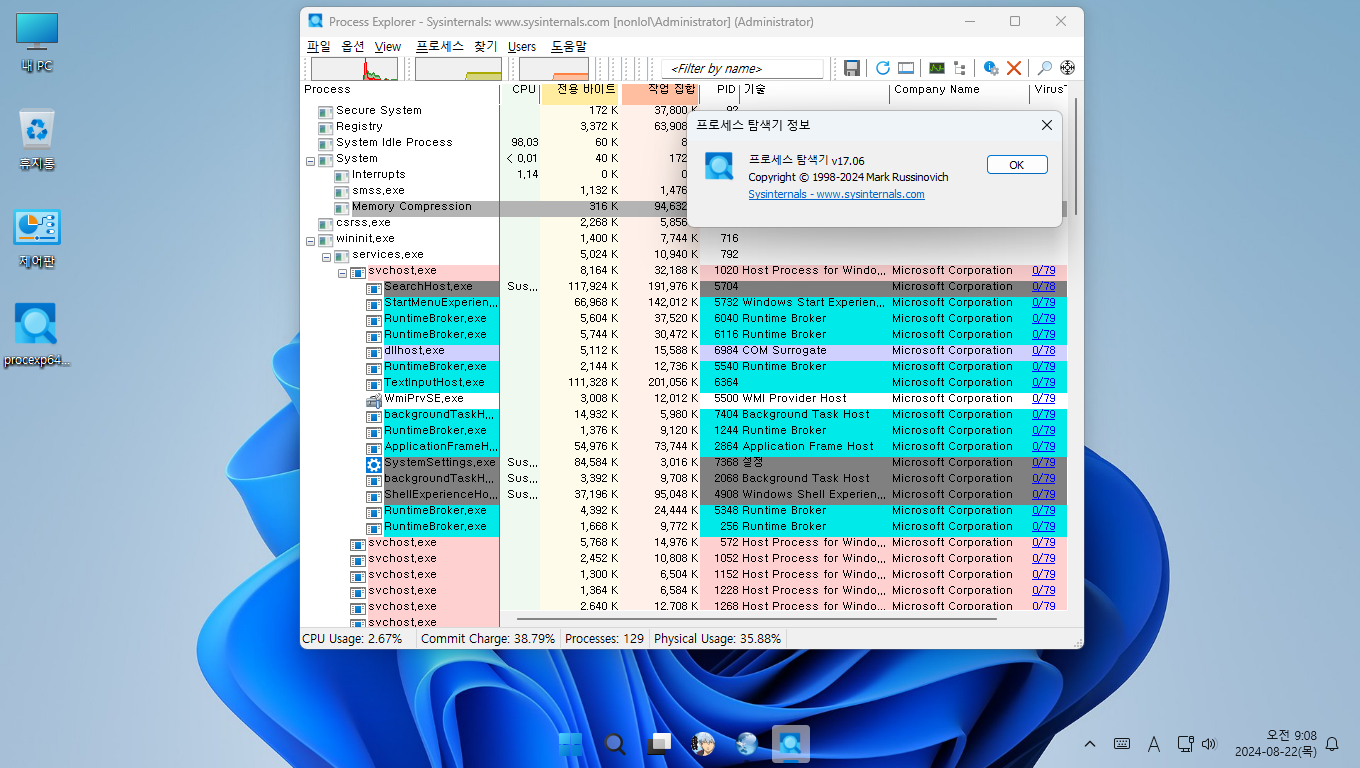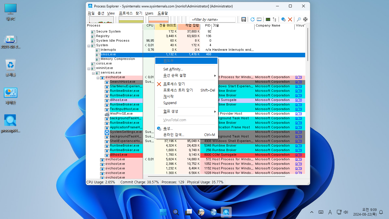 윈도우PE에서 사용하려고 Process Explorer를 그냥 저냥 사용가능하게 부분 한글화했습니다.