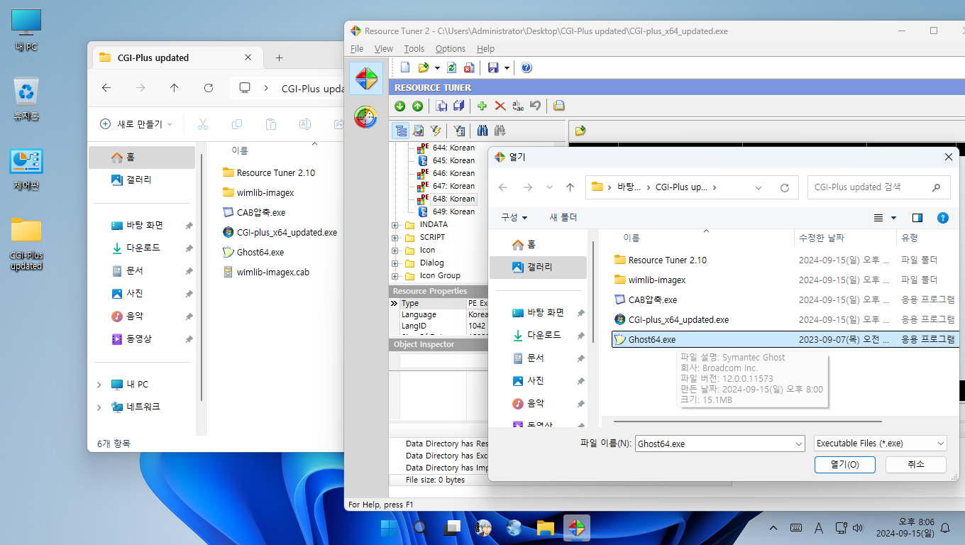 bin으로 교체해야 리소스 해커에서 파일 교체가 가능합니다.