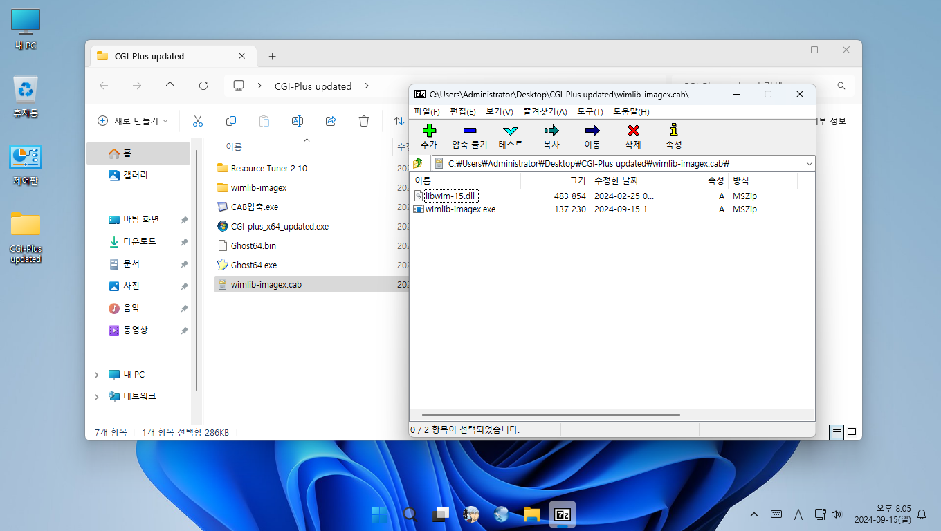 wimlib-imagex.exe와 libwim-15.dll은 CAB압축 파일 확장도