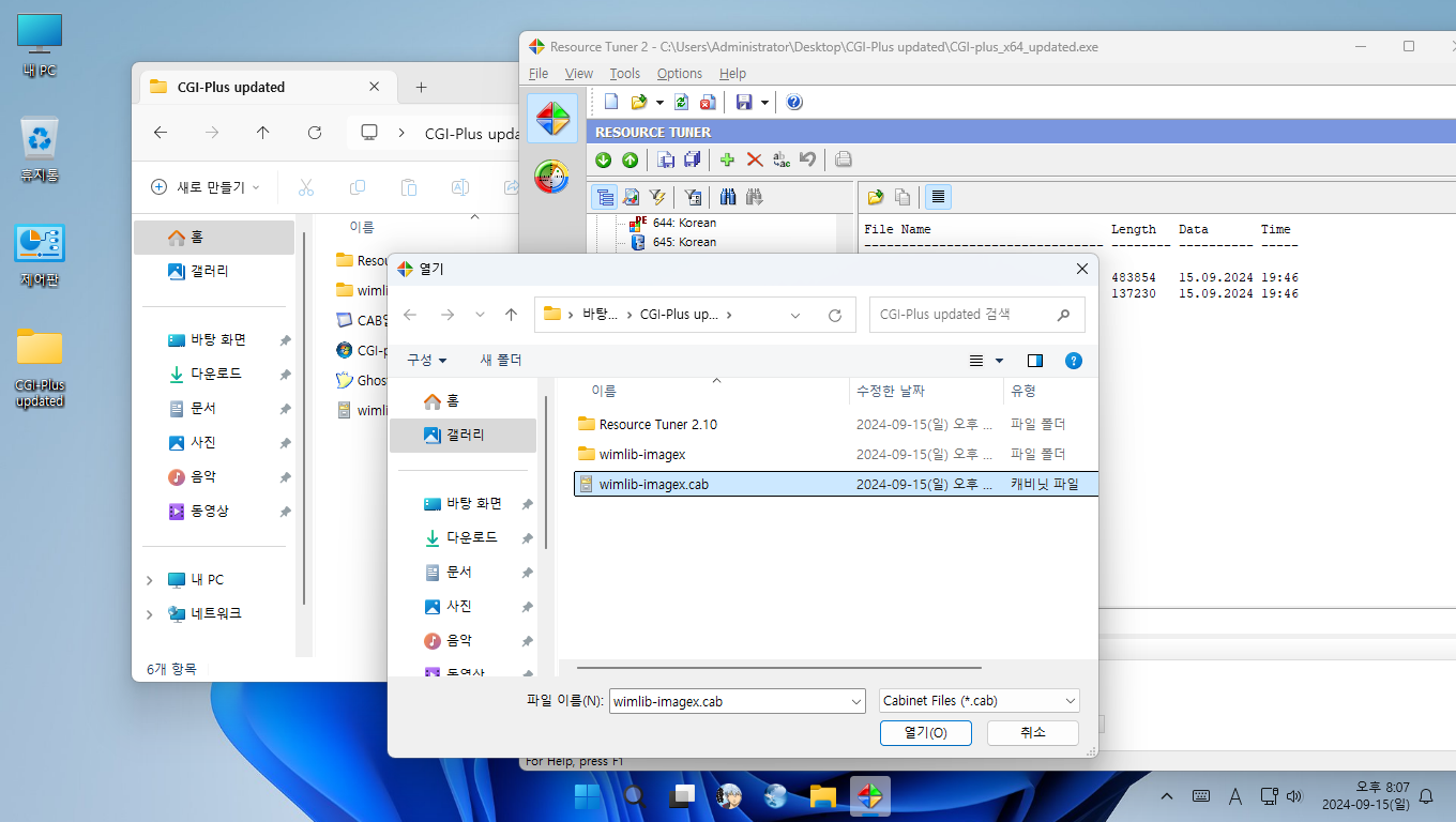 wimlib-imagex.exe와 libwim-15.dll은 CAB압축.exe 프로그램으로 cab 파일로