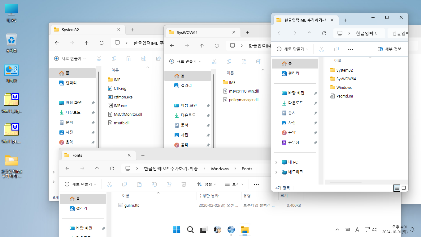 추가 파일은 한글 ime 파일에 필수로 필요한 파일들입니다.