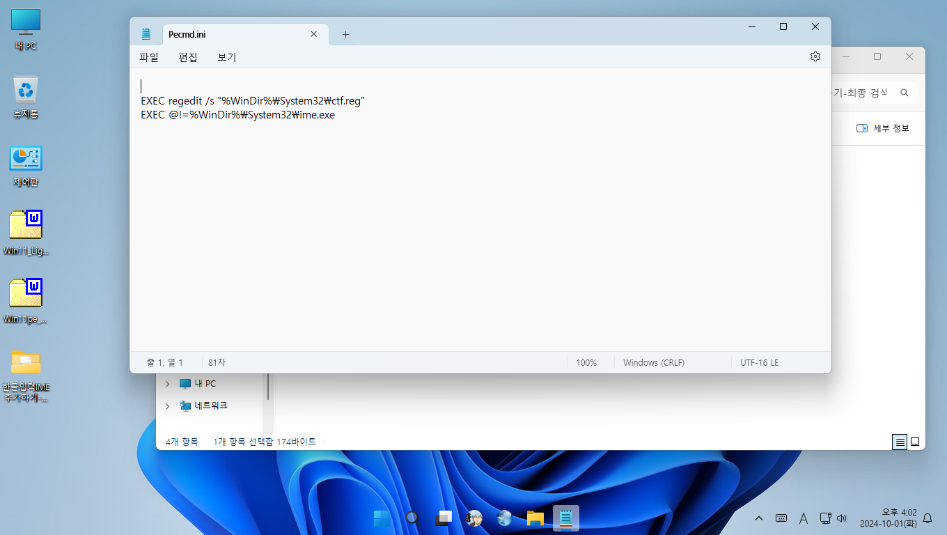 명령어 위치도 중요해서 위 명령어는 pecmd.ini 위 쪽에 위치하는 것이
