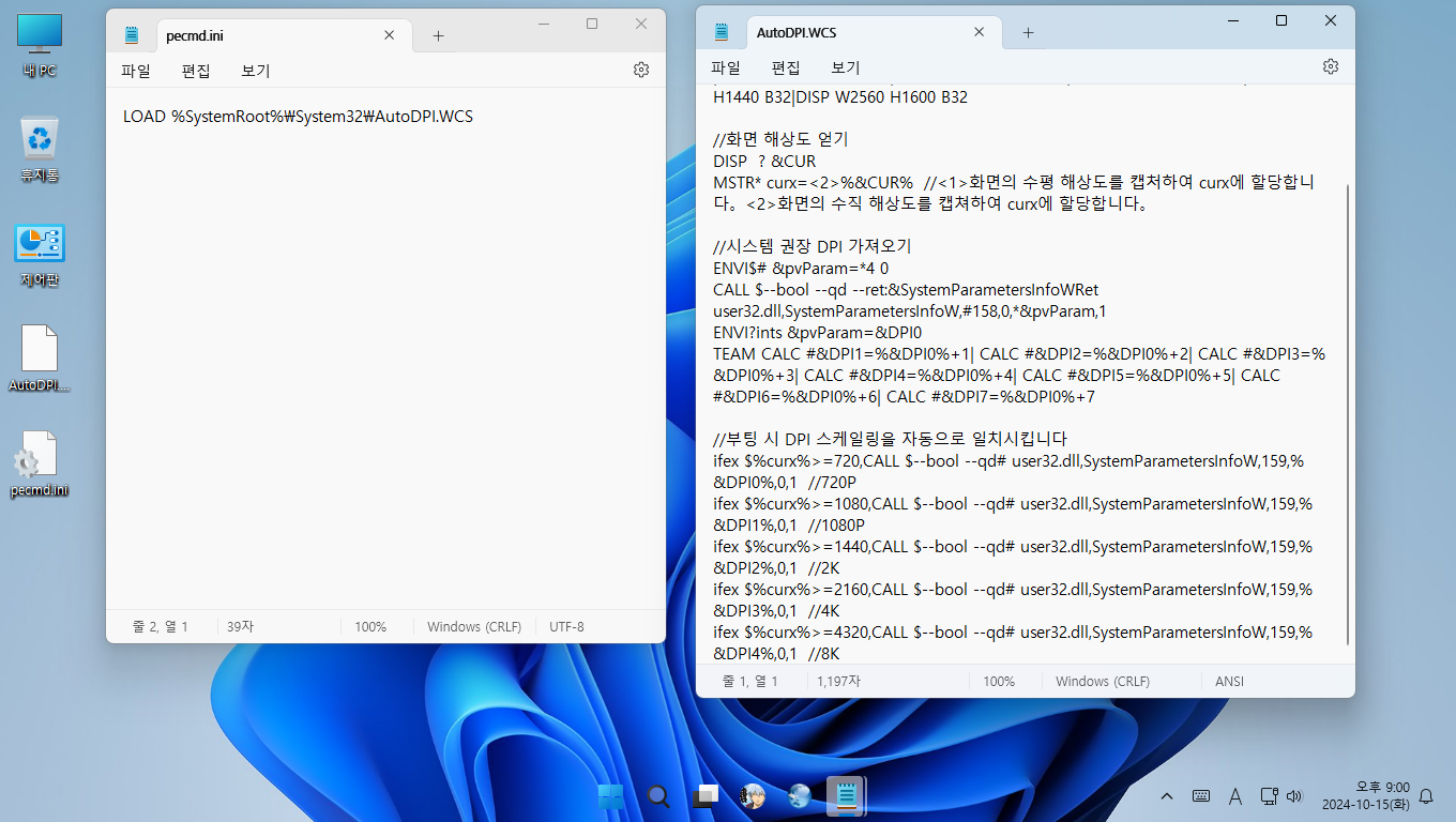 pecmd.ini에 LOAD %SystemRoot%\System32\AutoDPI.WCS