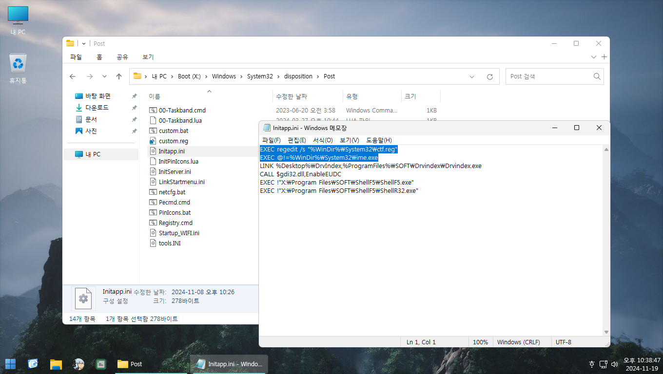 중국 윈도우11 24h2 2600.2152 pe를 한글화했습니다.