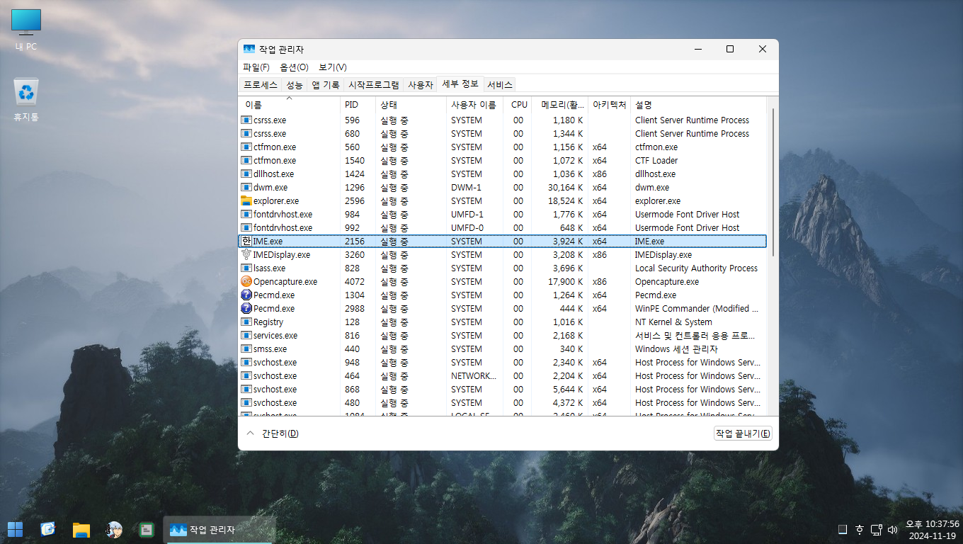 작업관리자 보면 ime.exe와 ctfmon.exe가 이상 없이 잘 작동하고 있습니다.