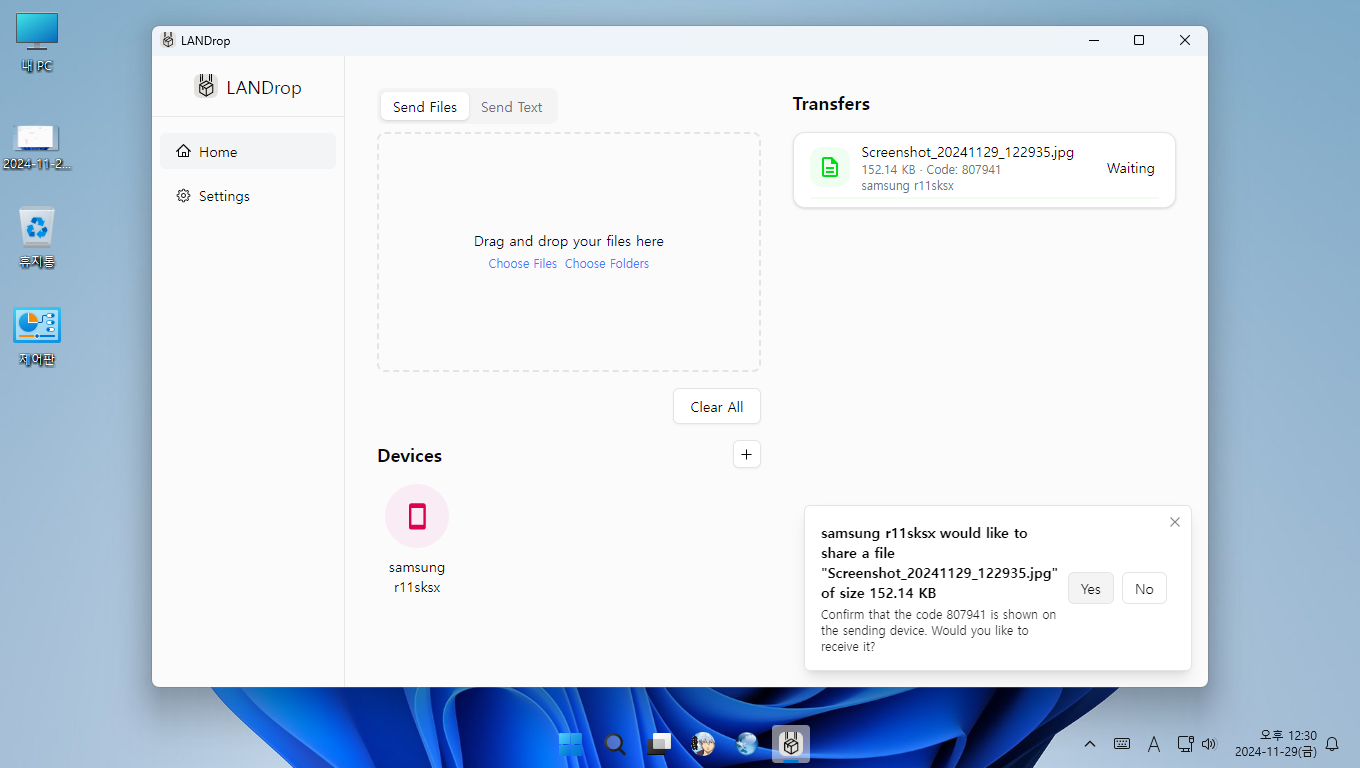 윈도우용은 홈페이지 https://landrop.app/ 에서 다운 받아서 사용하면 됩니다.