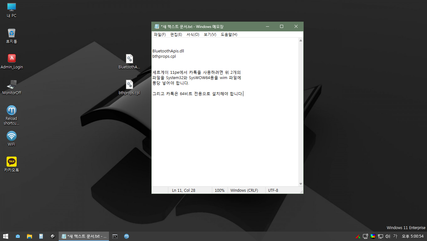 이번 버전에도 카톡이 안되어서 wim 파일에 파일 추가해서 설치 가능하도록 했습니다.