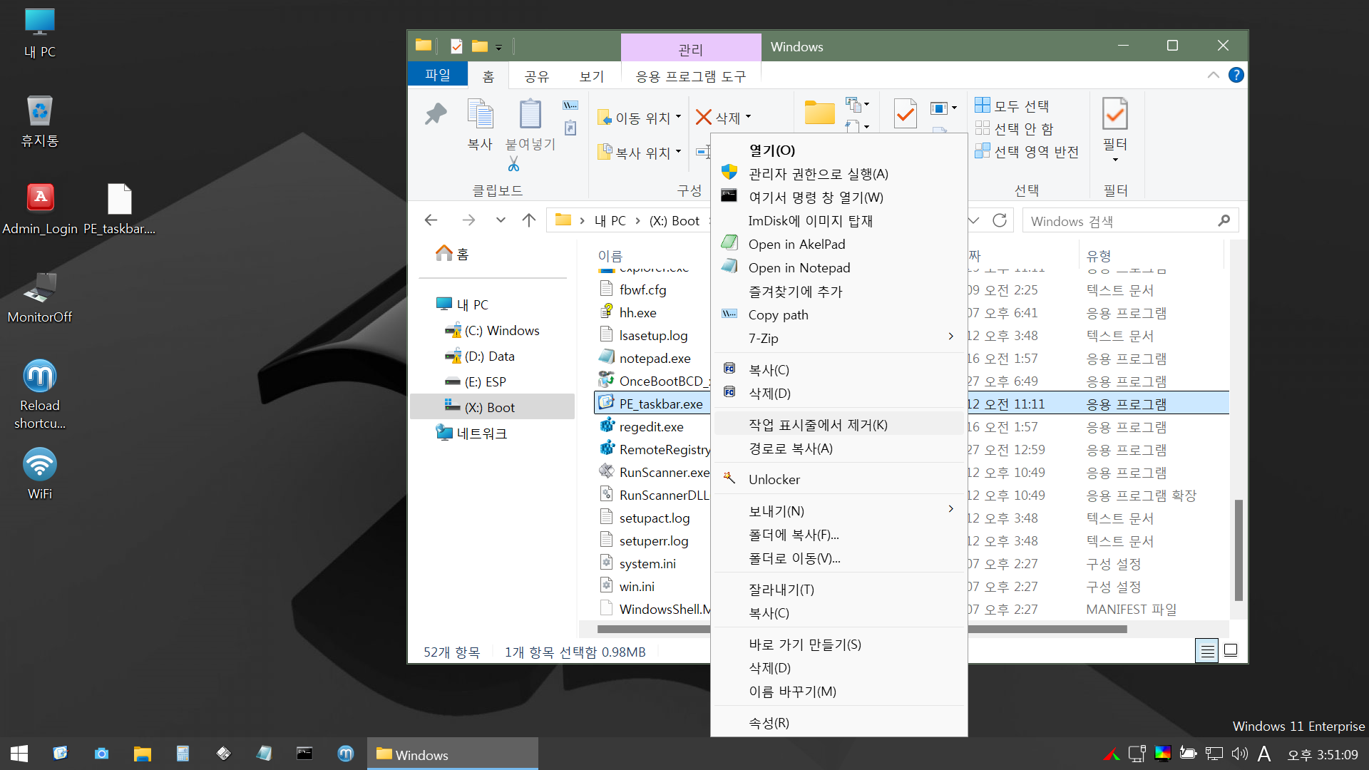 그런데 godworld님이 오류나는 pe에서도 사용 가능한 바탕화면 바로가기