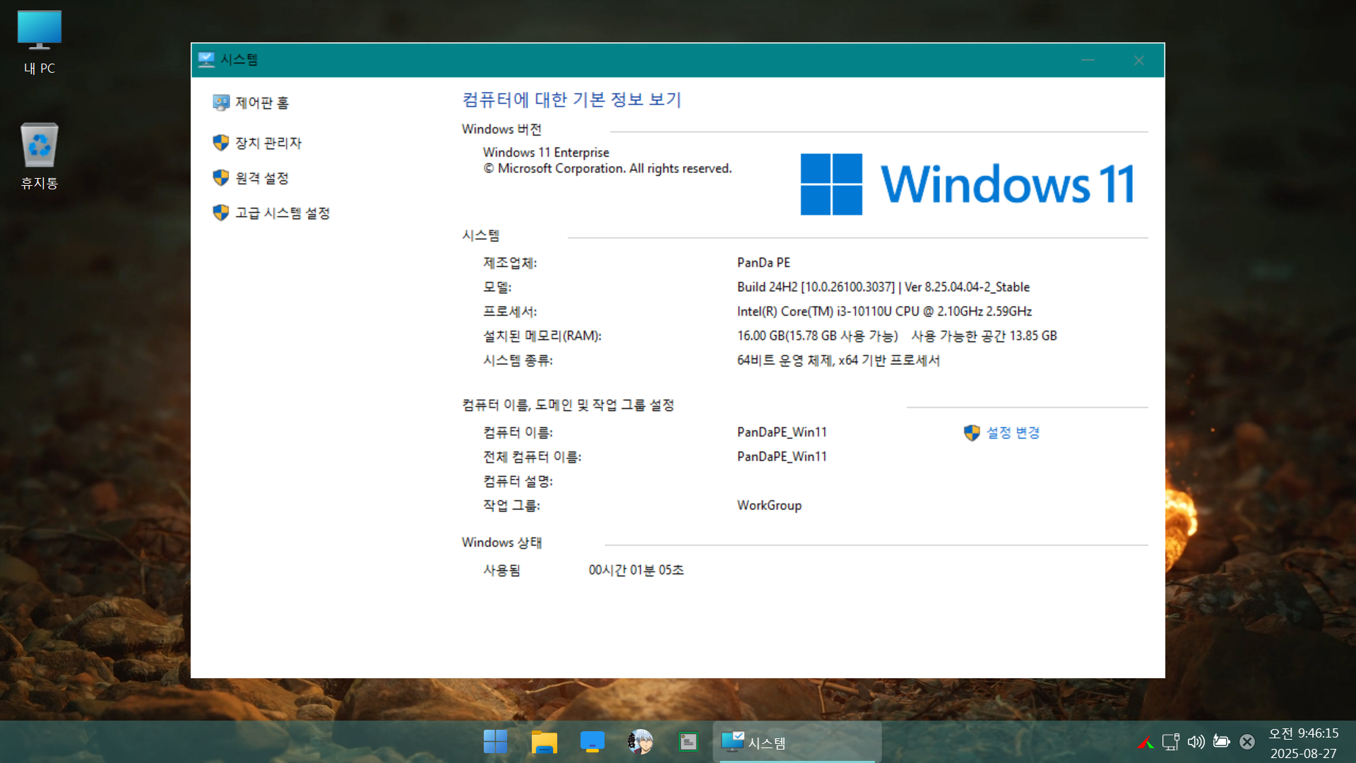 윈포에서 우연히 링크하나 알게 되어서 판다 윈도우11pe 24h2를 한글화 했습니다.