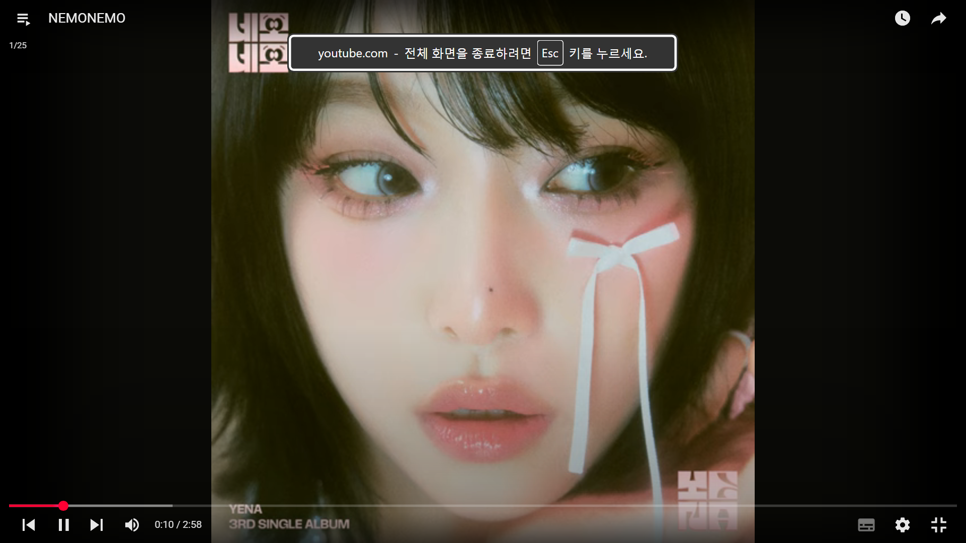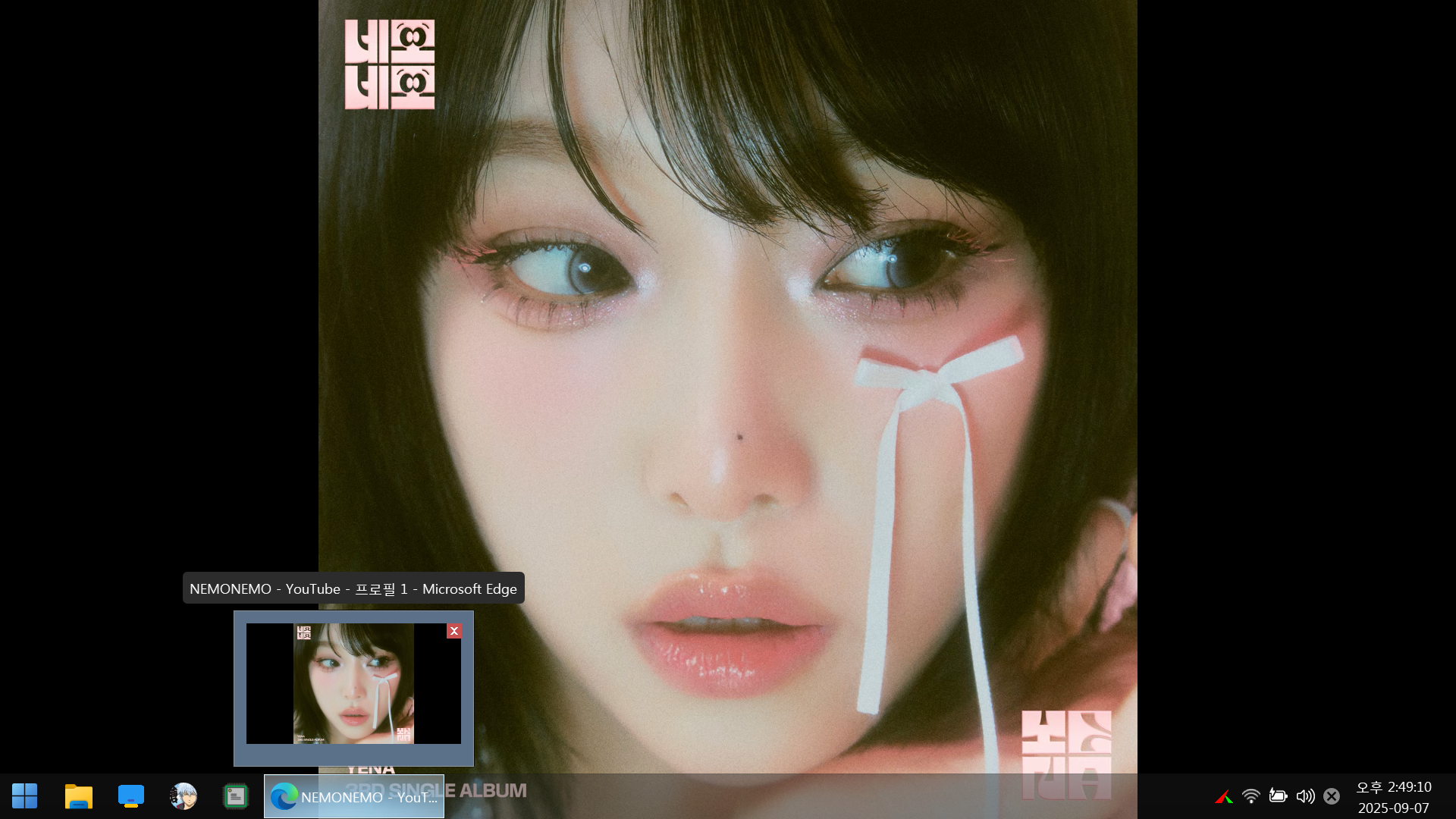몇몇 윈도우PE에서 유튜브 전체 화면으로 동영상 감상할때 작업표시줄이
