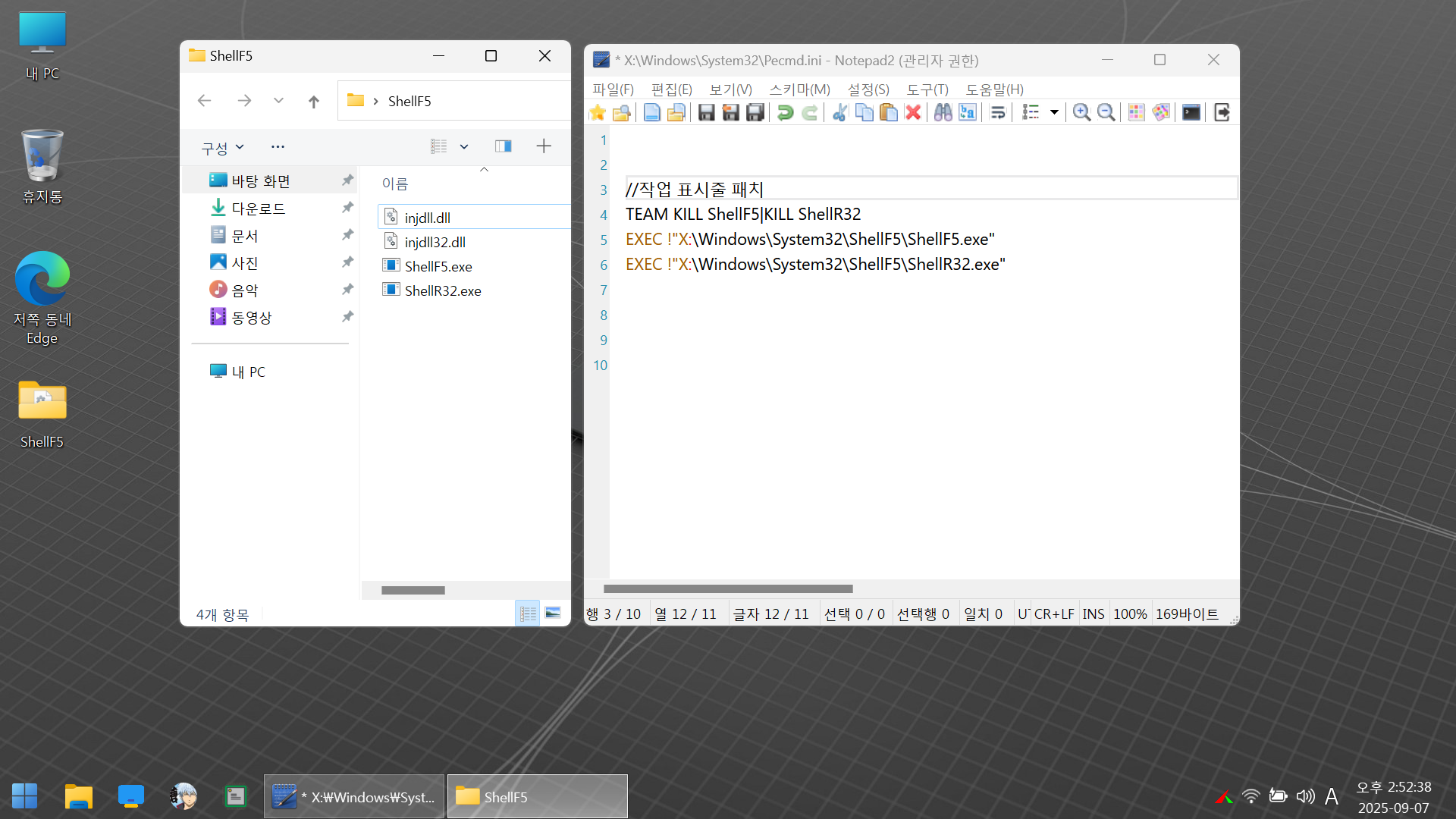 | 윈도우 PE 바탕 화면 바로 가기 및 제거 cmd 파일 2 (0) | 2025.09.19 |