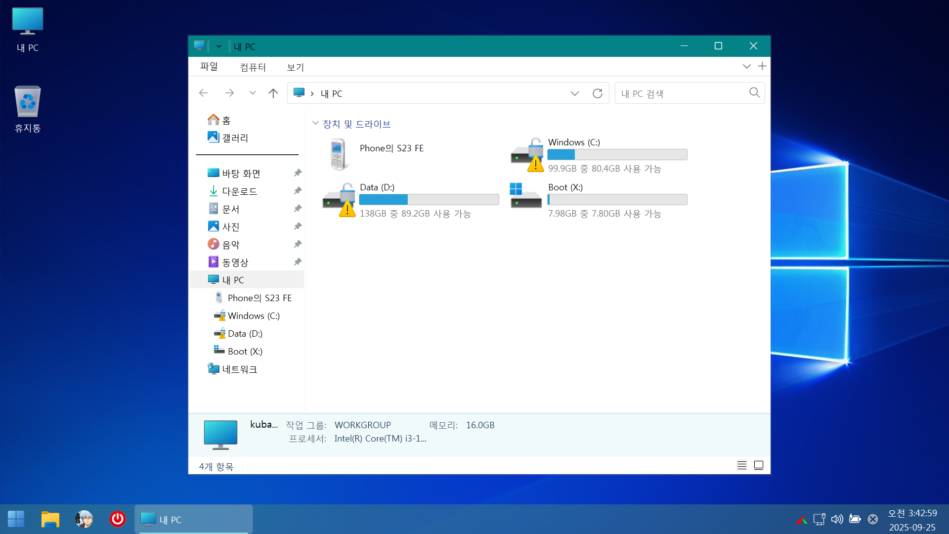 24h2 윈도우도 어제 설치했는데 이 설치 wim 백업 파일을 가지고