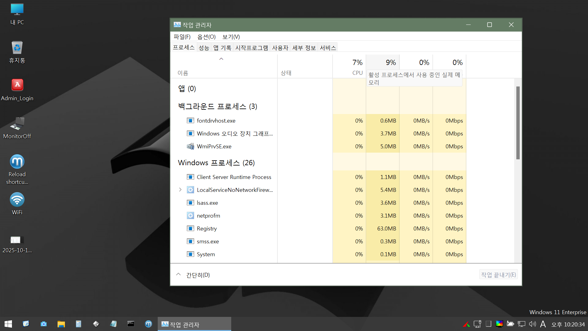 꼬임으로 세르게이 11pe를 한글화 하면 거의 대부분 잘되는데 유달리 작업 관리자