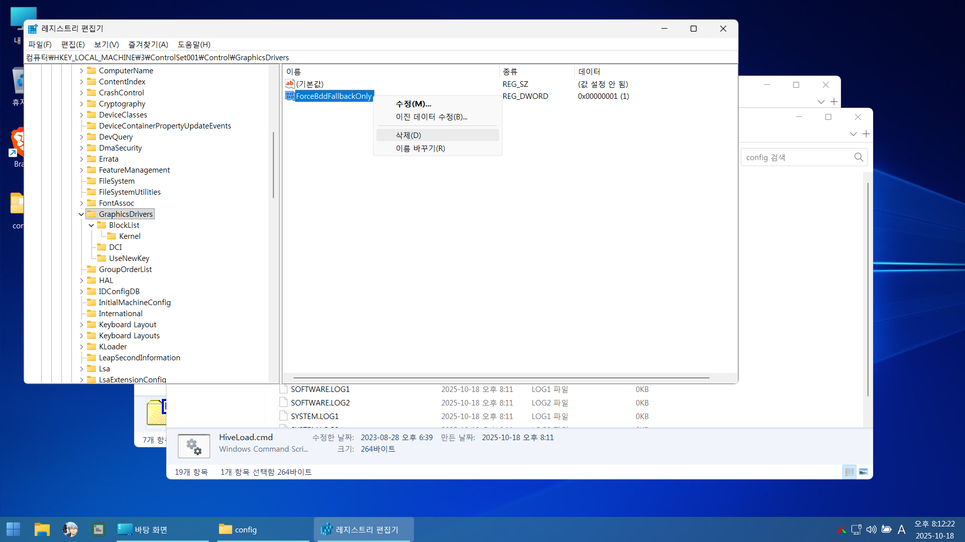 로드해서 위 사진 레지를 삭제하면 됩니다.
