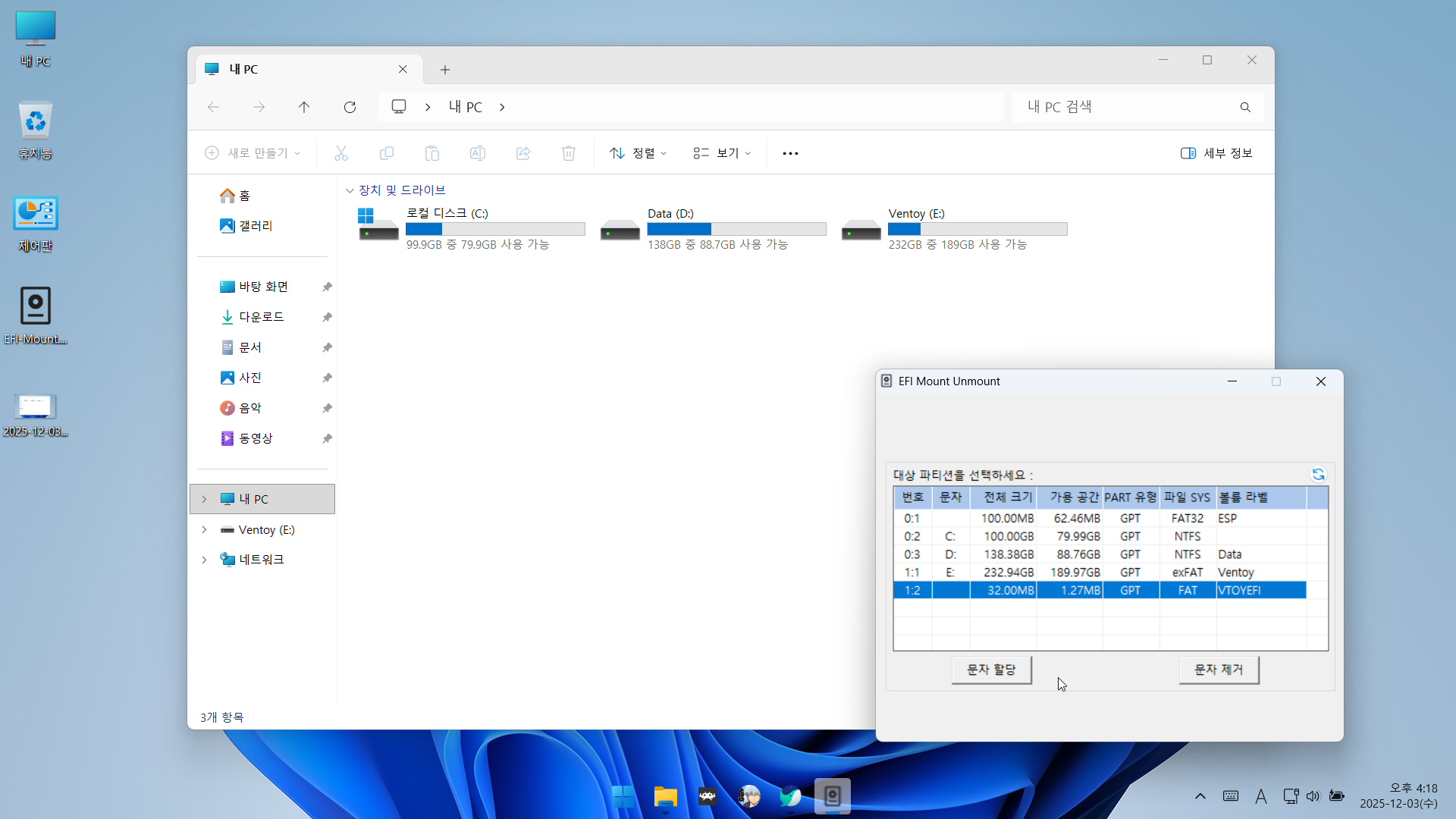 하기 위해 EFI-Mount.exe 파일을 위 사진 처럼 사용하면 됩니다.
