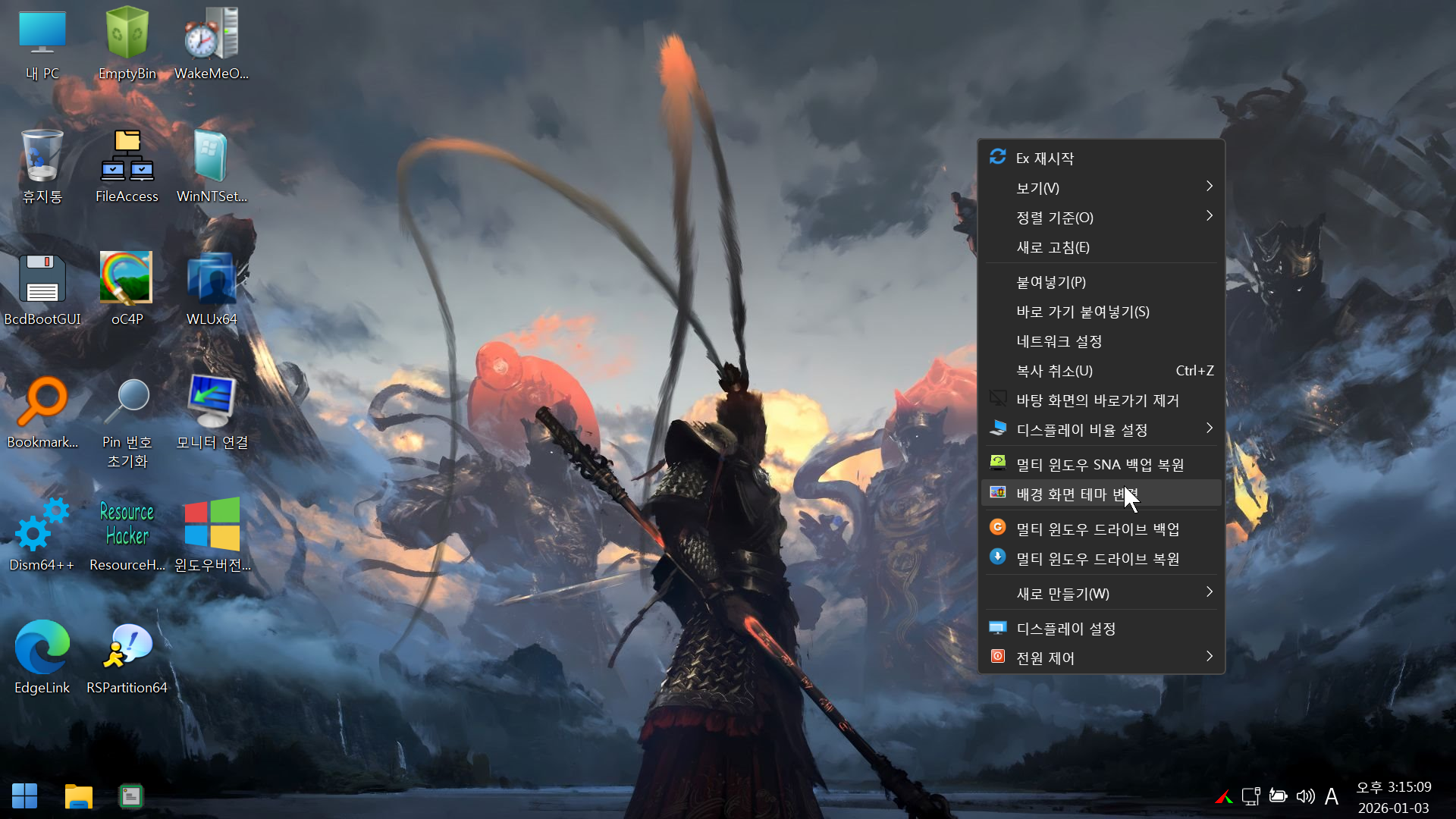 그리고 DeskLnkSartMenu.cmd 명령어를 윈포에 지*빠님 글에 있는 명령어로 수정했습니다.