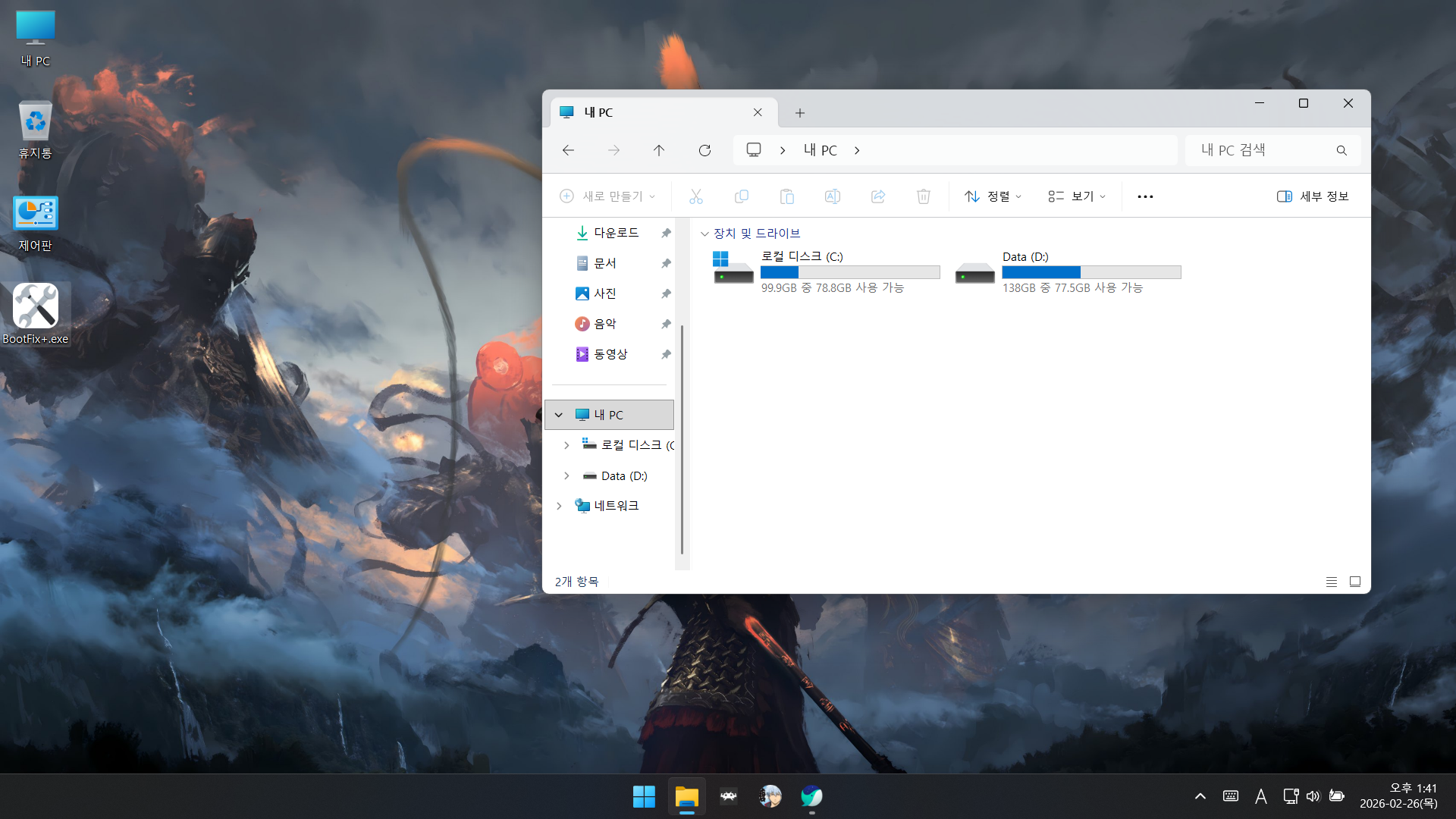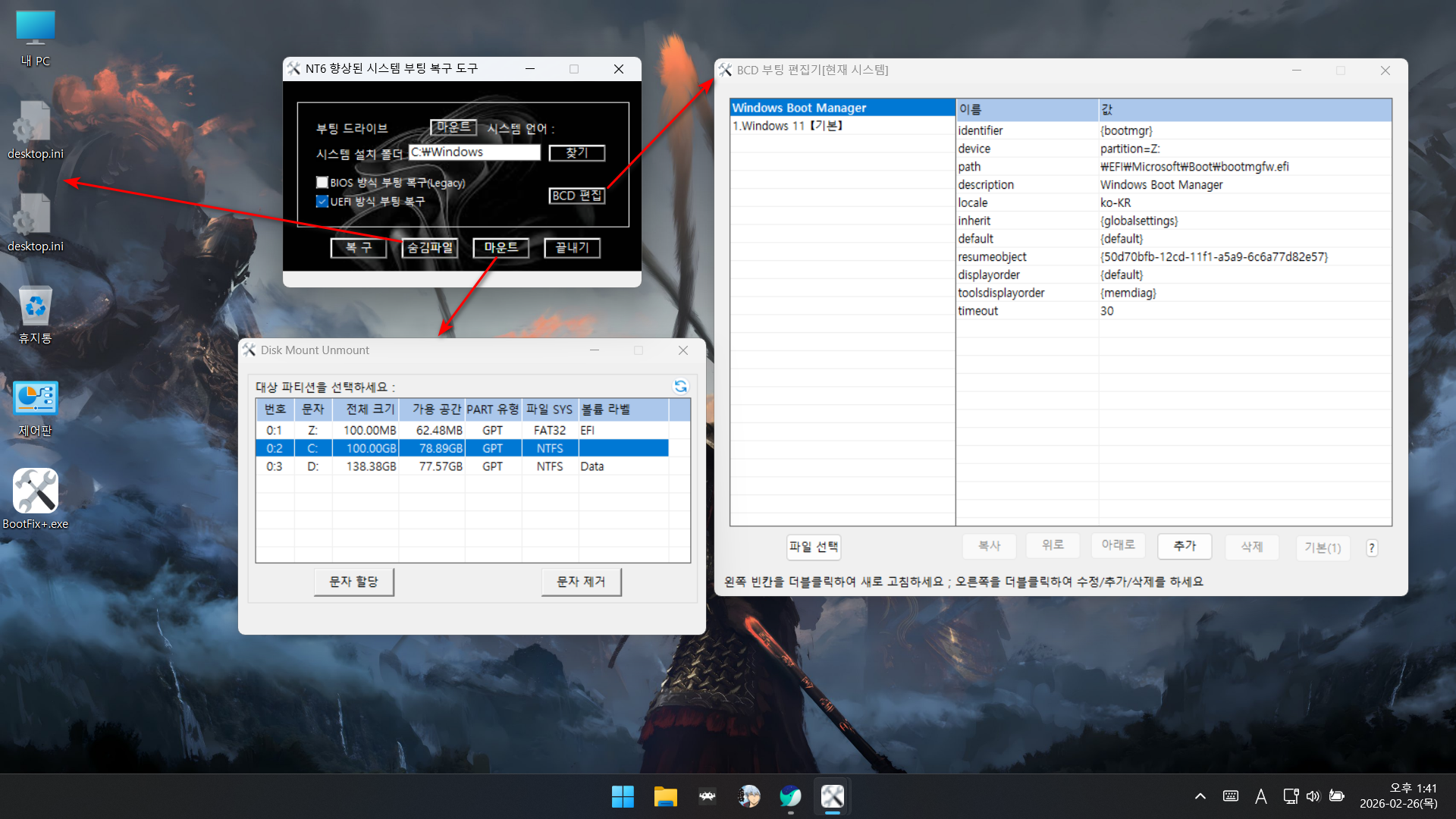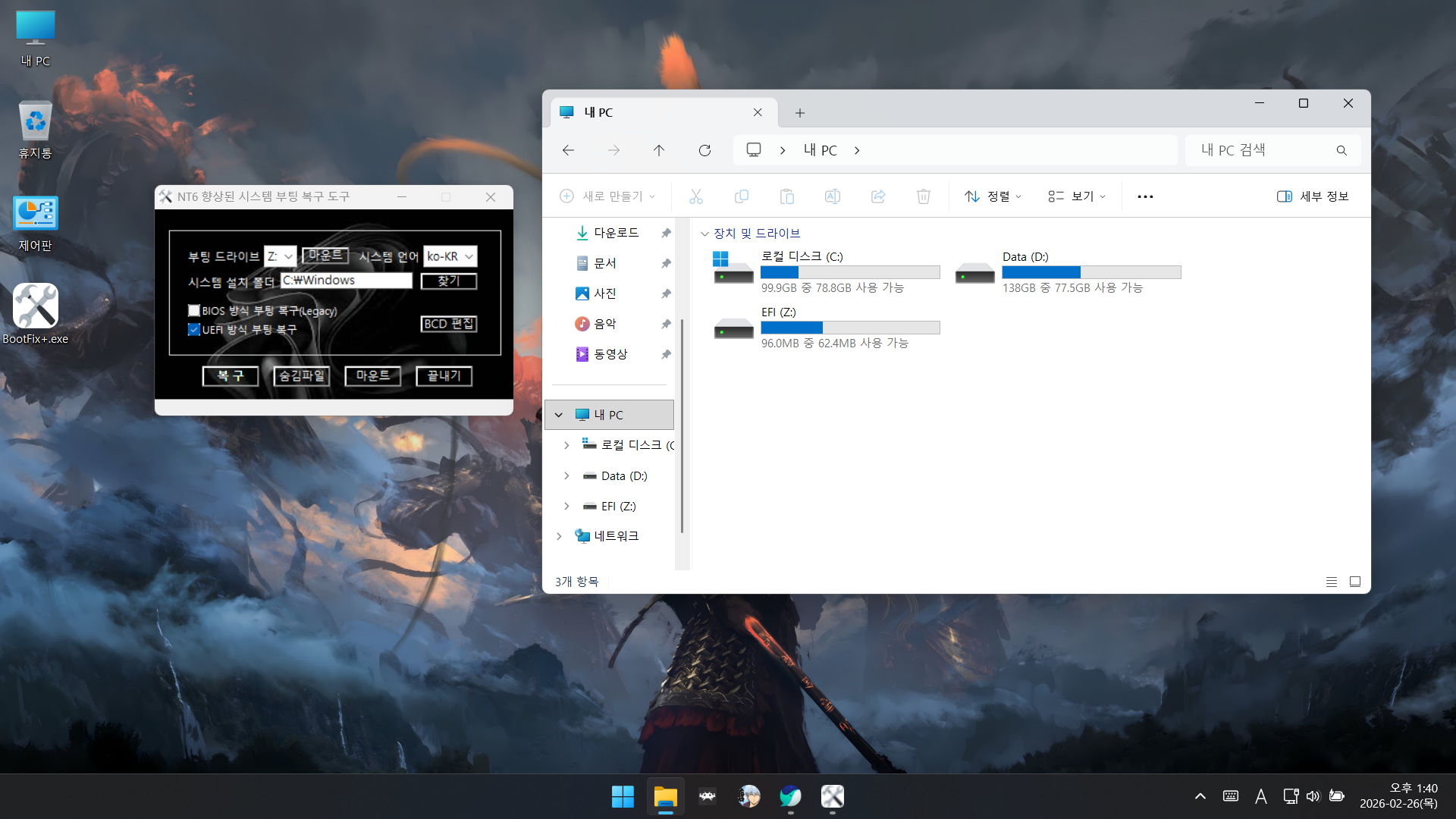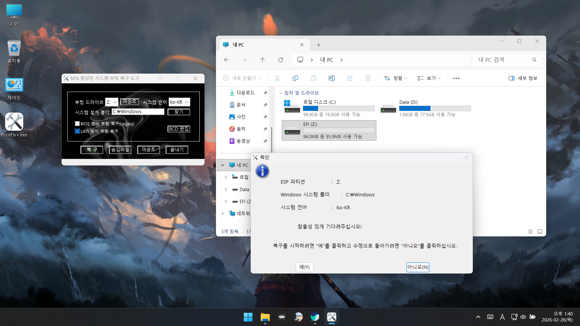 부팅 복구 프로그램을 우선 순위에 두는 것이 맞는 것 같습니다.